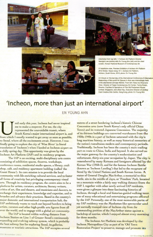 Art Monthly Australia에서 청탁받은 기사을 위해 홍콩에 10일간 머물면서, 그곳 화랑주인들, 작가들, 그리고 West Kowloon Cultural District의 일부로 2017년 오픈 예장인 "M+"이라고 불리는 새 미술관의 스웨던 출신 미술관장과 인터뷰를 했으며 짧은 기간 동안 70년대이후 홍콩 미술과 지역 미술계의 최근 환경에 대해 많이 배웠다고 했다.