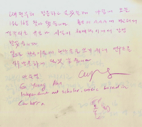 오스트레일리아에서 활동하는 미술평론가 안은영 씨가 1월16일 한국미술정보센터를 내방하였습니다.