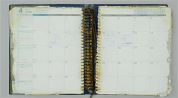 (사진4) 2017년 3년만에 인양된 세월호에서 수습된 업무 수첩의 복원 전 모습.