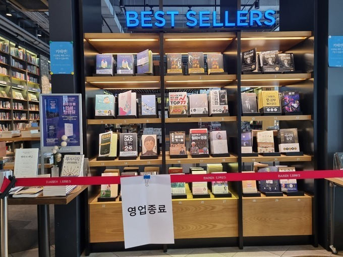 (사진1) 최종 부도를 맞은 대형서점 반디앤루니스의 서울 시내 한 지점에 지난 17일 영업종료를 알리는 출입제한선이 설치돼 있다.