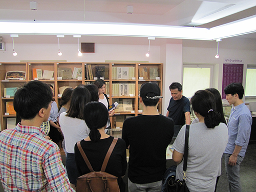 9월 1일 문봉선 교수님 현장수업의 일환으로 홍익대 대학원생 10여 명이 한국미술정보센터에 방문하여 현재 전시 중인 <한국미술 공모전의 역사> 展을 관람하였습니다.